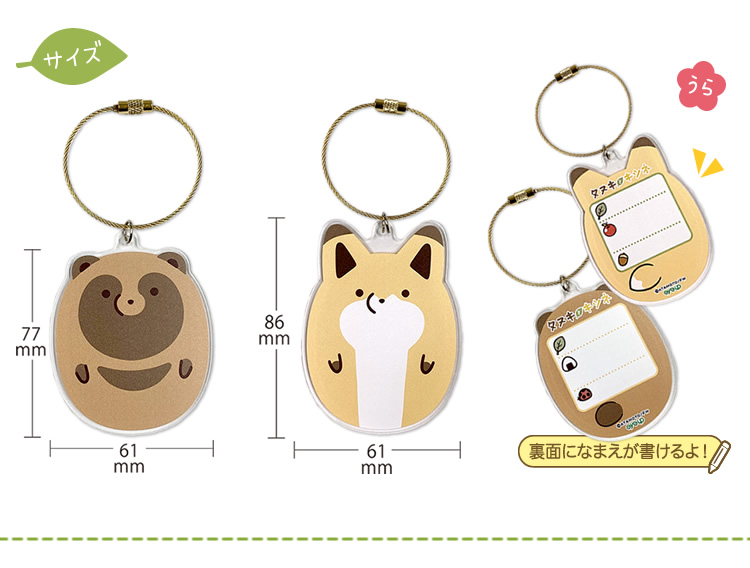 とってもポップで旅行がもっと楽しくなる 遠くからでも一目でわかるラゲッジプレート(タヌキ)と(キツネ) 全2種で登場!!装着部分がワイヤーなので、取っ手部分やファスナーに つけて、しっかり固定できます。裏面になまえが書けるので、手荷物の 受取り間違いの心配もありません!! 【サイズ】本体約W61×H177~86×D3mm 【素材】 PVC (C)ATAMOTO/Frontier Works Inc.