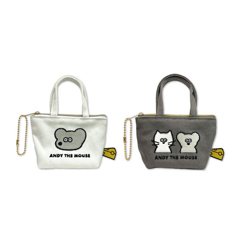 『ねずみのANDY』からミニチュアバッグボールチェーンの登場です☆ キャンバス生地に刺繍をしたデザインのミニチュアバッグ! ハンドジェルやリップなど小物入れにぴったりです。