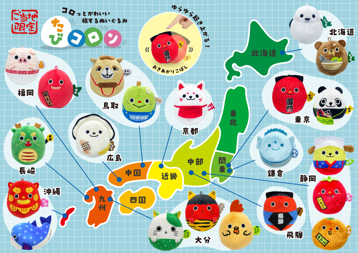 ぬいぐるみタイプの起き上がりこぼし【たびコロン】大分で新発売!